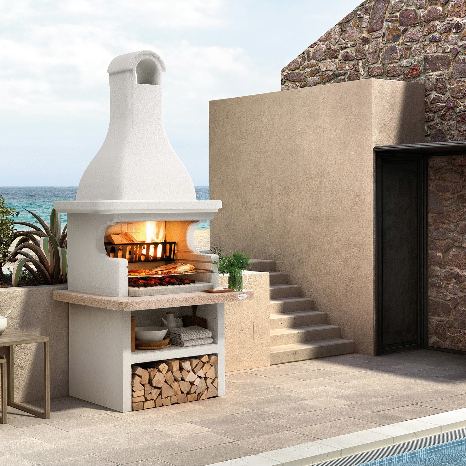 Um prático barbecue a lenha ou a carvão de pequenas dimensões, que pode colocar em diferentes contextos: jardim, alpendre, terraço! A bancada é em Marmotech polido com acabamento em granito vermelho ou cinza.